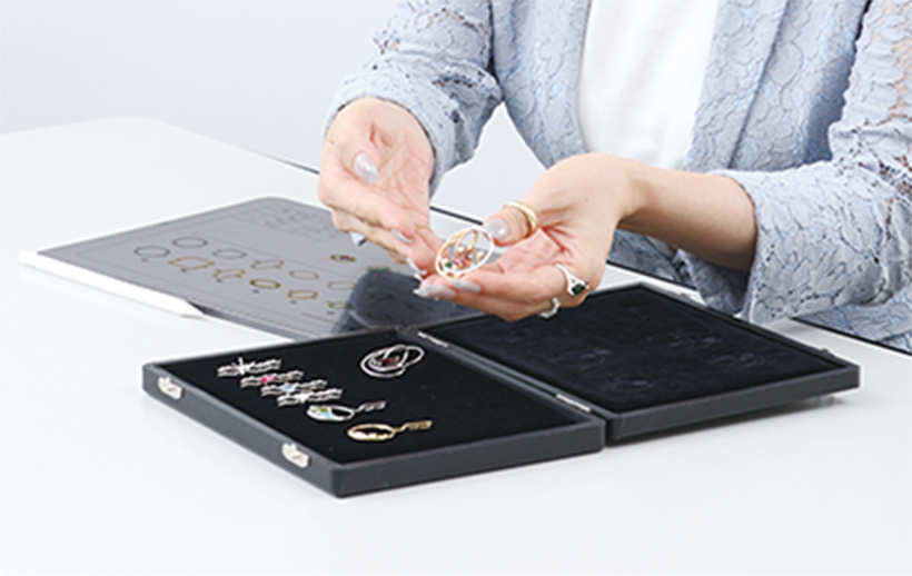 お預かりした宝石をタブレットに取り込み、仕上りがイメージしやすいビジュアルを提示します。