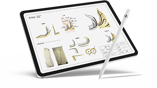 当社は日本で最も権威のあるジュエリーデザインコンテスト受賞の実績、創業50年を超える自社工場を持ち、ジュエリーにおけるワンストップサービスを実現しております。それでもジュエリーを楽しむためには、ジュエリーが好きで、その楽しみを伝えたい想いが強いデザイナーが必要です。オリエント4C‘sのデザイナーは、趣向を押し付けるだけでなく、お客様と共にデザインを描き上げます。