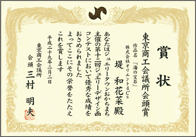 弊社の堤さんが東京商工会議所会頭賞を受賞しました。